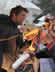もみくちゃになるロブ。ファンのカメラに笑顔を向けたり、本にサインしたりと、ひとりひとりに丁寧に応対していました!