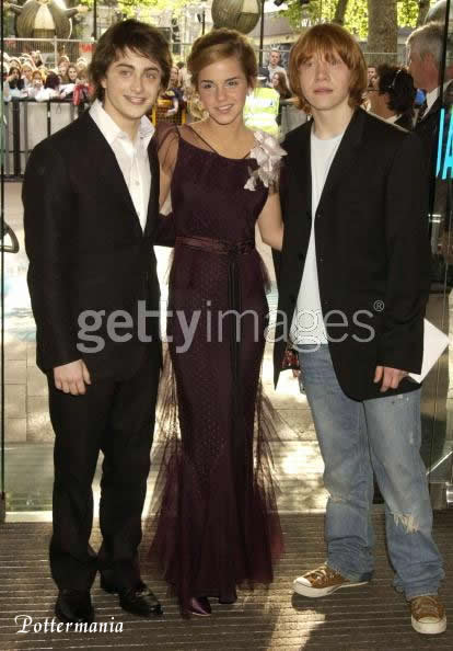 | 31日朝に放送された「ズームインSUPER」(日本テレビ)と「めざましテレビ」(フジテレビ)によると、オデオン劇場(オデオン・レスター・スクエア)でのロンドン・プレミアに集まったファンの数は5800人。報道陣は24カ国から集まり、カメラは130台以上も。雨が降ったり止んだりするあいにくのお天気でしたが、出演者が登場するとファンから大歓声があがりました。ダニエル君は黒のスーツ、エマちゃんはシックな紫色のドレス、ルパート君はラフなジャケット姿、原作者のローリングさんはセクシーなグリーンのドレスで登場。ダニエル君は「日本の皆さんコンニチハ。いつも応援をありがとう。僕がもらうファンレターの半分は日本からのものなんだ。本当にありがとう。」「ここにいられてうれしいよ。本当に最高。この映画を楽しんでくれると良いなと思っています」とカメラに向って答えていました。なお、めざましテレビの司会者・大塚さんの「東京(の試写会)には誰が来てくれるのでしょうね?」との問いに、軽部さんは「そりゃもうスターたちが揃うんじゃないかな、と思うんですけどね」と答えていました!!